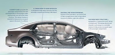 The 2010 Chevrolet Malibu safety features include high-strength steel safety cage as seen below.