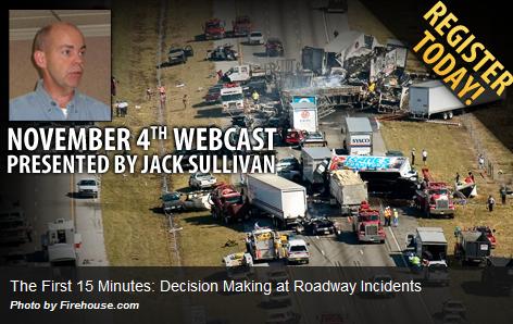 Firehouse.com is holding another great webcast training opportunity that goes along with extrication. The First 15 Minutes: Decision Making at Roadway Incidents is a webcast presented by Jack Sullivan. Jack is the director of training for the Emergency Responder Safety Institute. Make sure you sign up for the webcast at Firehouse.com! Just in case you don’t listen to it live, Firehouse.com usually has an archive of the webcast available within 24 hours.