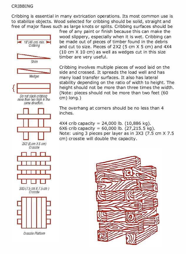 I was wandering around the Internet and ran across a Canadian Public Safety site that has some good basic information about wooden cribbing. The information below is basic 101 cribbing but it never hurts to review the basics.
