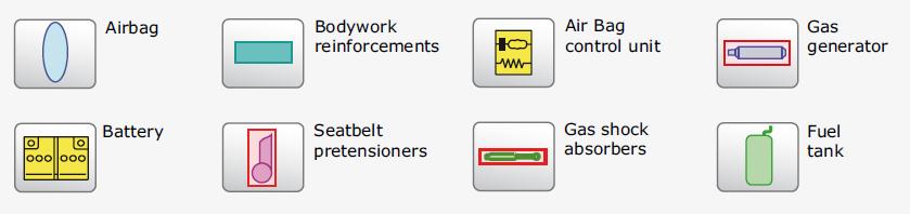 Rescue Cards use the common key to show the different hazards in vehicles. The key is very similar to the one Moditech uses in their Crash Recovery System. Interesting…..maybe the Moditech Pioneers had a hand in developing the Rescue Cards for Opel.