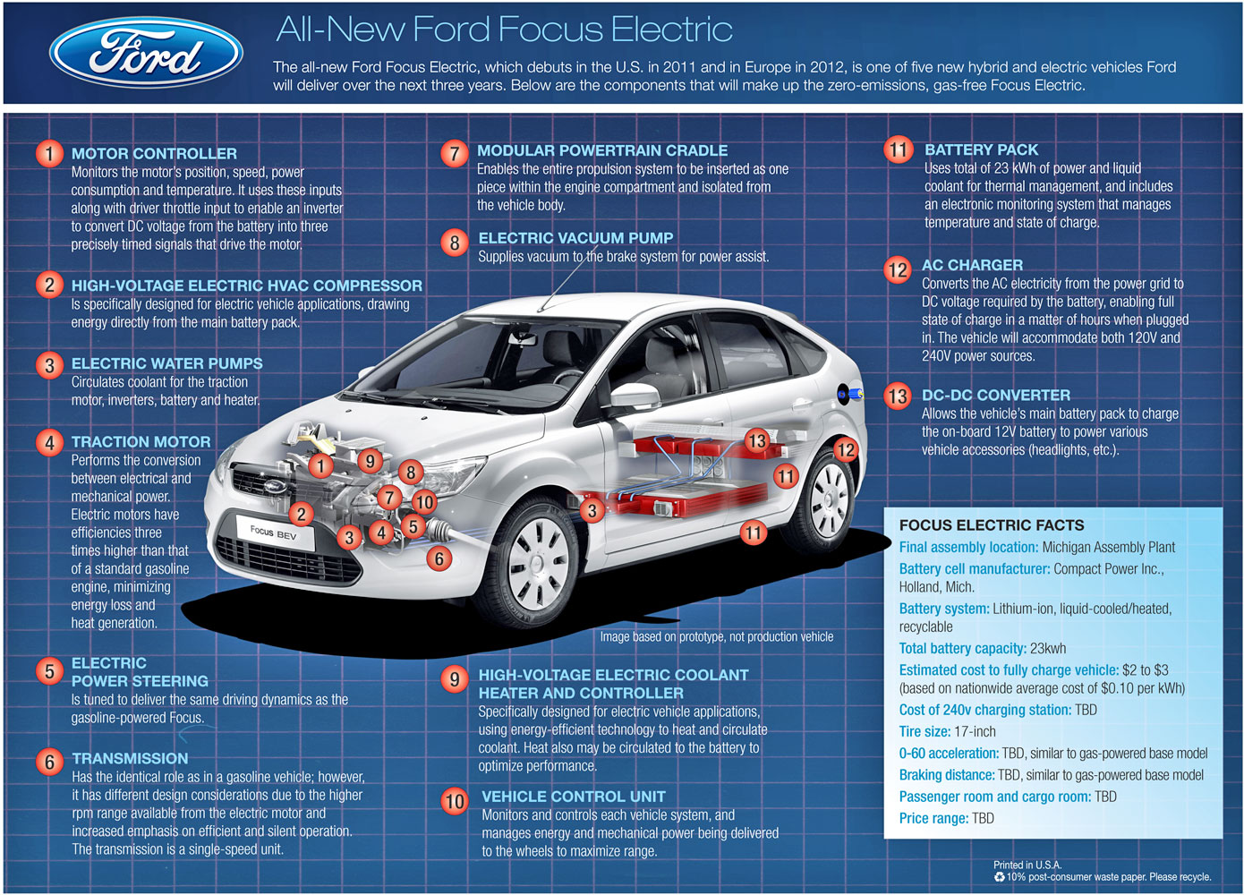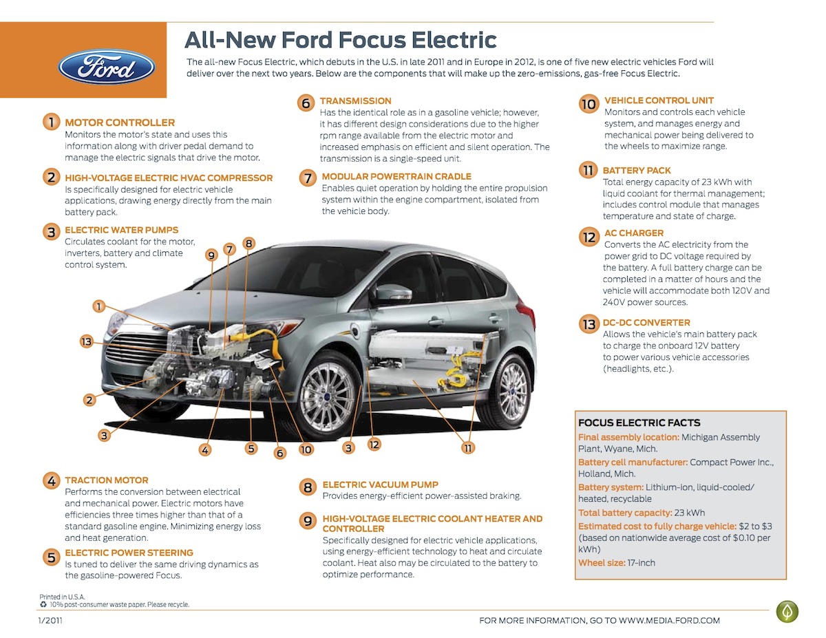 The Focus Electric is powered by a 23 kwh high-voltage, lightweight lithium-ion battery system. It uses an advanced active liquid cooling and heating process to regulate battery temperature and help maximize battery life, so you can get the most miles out of each charge.Ford Focus Electric Hybrid Extrication Battery Plug-in