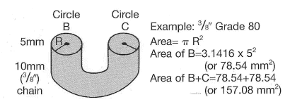 The grade refers to the tensile strength of the chain. This is expressed in newtons per square millimeter (a newton is approximately 0.224805 lbs). The tensile strength is calculated by multiplying the grade times the area of the two cross sections of a link.