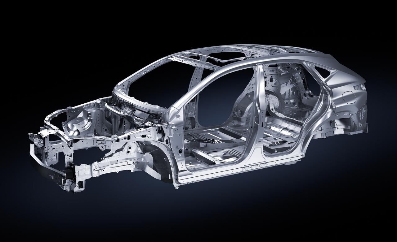 The body structure of the combines extensive use of high-tensile steel (up to 980Mpa) with aluminium. That steel can be found in strategic areas such as the centre pillar hinge reinforcement, outer rockers and roof crossmembers – all of which are positioned to disperse impact loads away from the cabin – while reinforcements have been applied to the pillars and seatbelt anchorage points to further protect occupants.