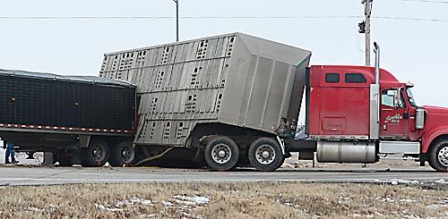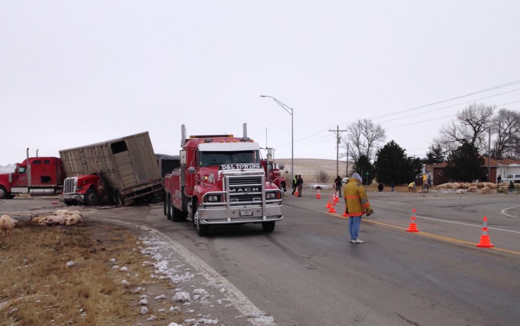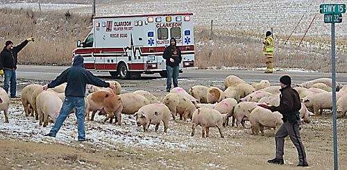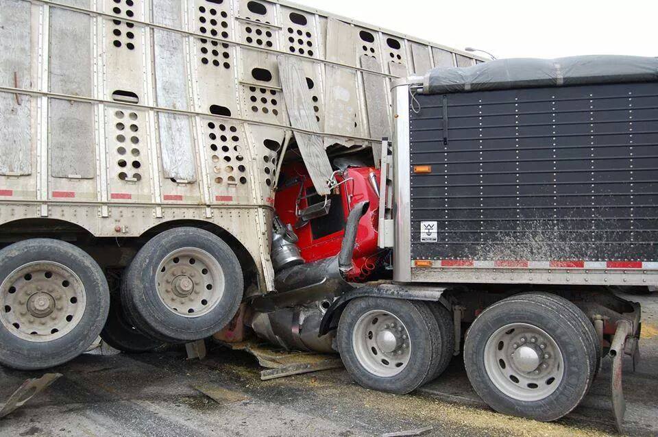 Here’s more information on this incident…..Hogs run on highway following accident and here Semi Trucks Collide at Busy Intersection Near Howells