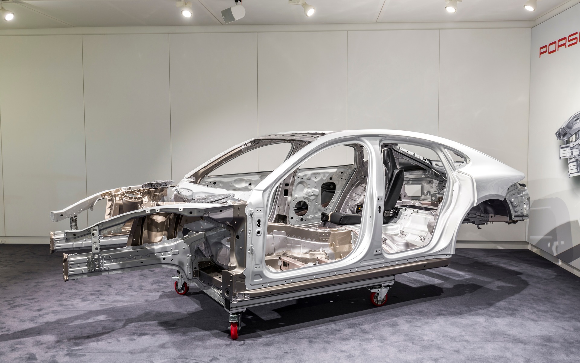 The 2017 Porsche Panamera body structure is the first car built using VW Group’s MSB platform architecture. The hood, front fenders, body side panels, and roof are all aluminum. The basic structure comprises a mix of aluminum and high-strength steels.