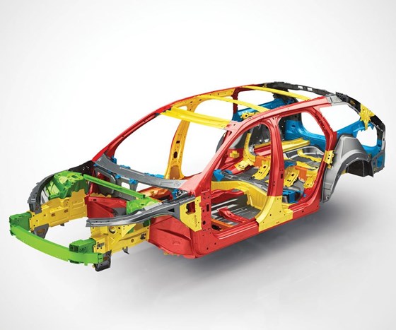 The 2017 Volvo V90 body structure is color-coded, based on material use.