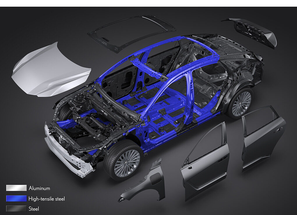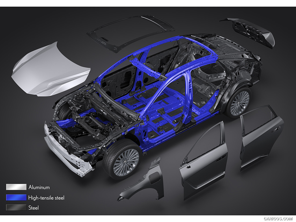 The Lexus 2026 ES rides on an updated version of the TNGA-K platform, which supports both hybrid and electric powertrains. This platform incorporates ultra-high-tensile steel in critical areas to improve crash safety and structural integrity. The vehicle’s longer wheelbase and increased dimensions likely required additional structural bracing, which may include hot-stamped steel in load-bearing zones. The Lexus ES also includes aluminum components in non-structural areas (like the hood or suspension arms) to balance strength and efficiency.