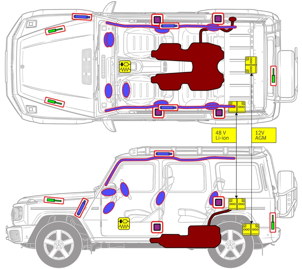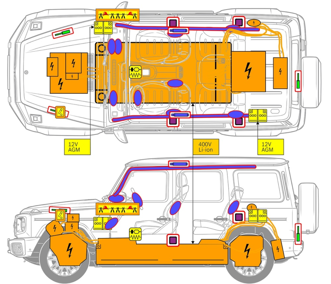 - Electric Variant (G580): Regenerative braking system and high-voltage disconnect protocols in place.