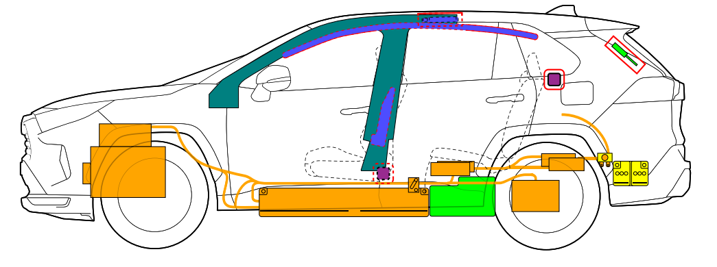 The 2025 RAV4 Plug-In Hybrid uses high-strength steel in critical areas such as the side uniside reinforcements, front and rear rails, and trunk floor sections, which are designed to absorb and redirect crash energy away from occupants. The structure and safety cage earned top marks in IIHS crash tests, indicating excellent integrity during frontal and side impacts.