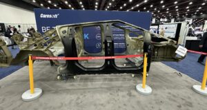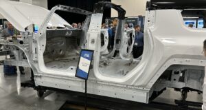 2023 Hummer General Motors had the Body-in-White (BIW) of the 2023 Hummer SUV and truck displayed at the Great Designs in Steel (GDIS). The rocker panel in this vehicle is huge! It has to be with a double-stack battery pack. ...