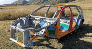 Just remember, most Subarus are going to made of a ton of Boron and other UHSS. The Subaru Impreza WRX STi is no different. Just take a look at all the red colored pieces of the body structure below.